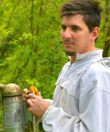 La passione per l'apicoltura nasce quando ero ancora un bambino, quando con mio papà andavamo a trovare le famiglie di api, dono prezioso del nonno Benito, custode silenzioso di una sapienza antica.